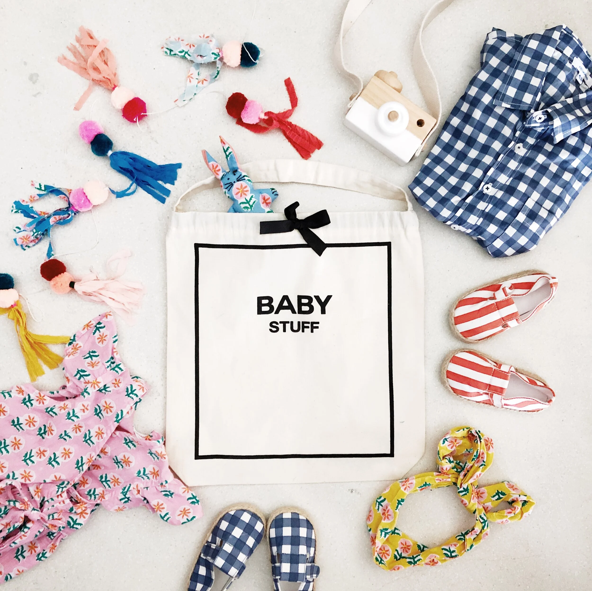 1. Baby Nest from Buddy & hope , 2. Blankets from NG Baby, 3. Shell Mat from The Straw studio, 4. Flamingo from Jelly cat, 5. Clothes from Mini Rodini, 6. Storage Box from Bag-all, 7. Baby sitter from Charlie Crane.