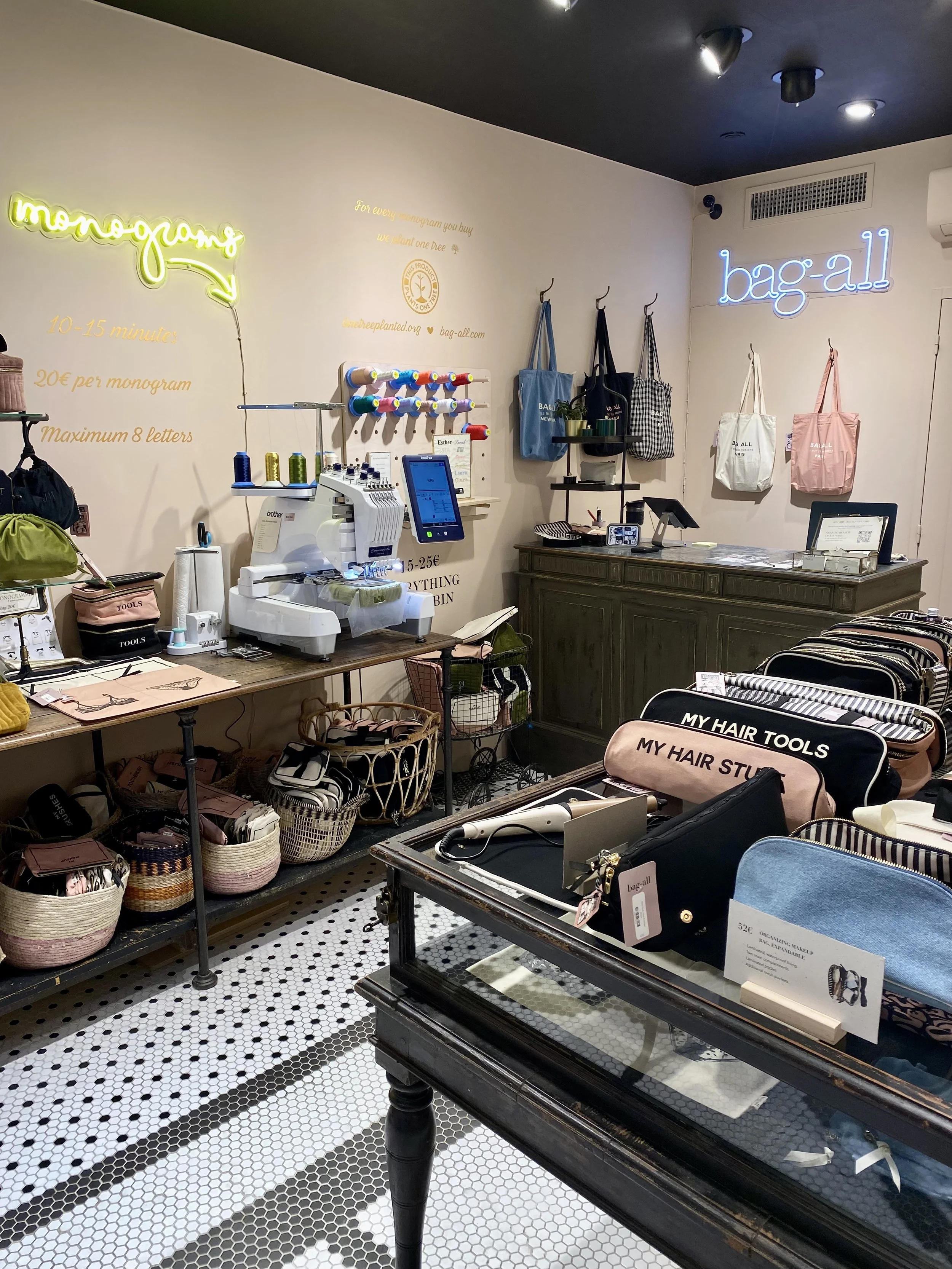 The Paris store also offers one of Bag-all’s most loved services: personalization. Many products can be monogrammed with initials, turning everyday organizers into something personal and unique.